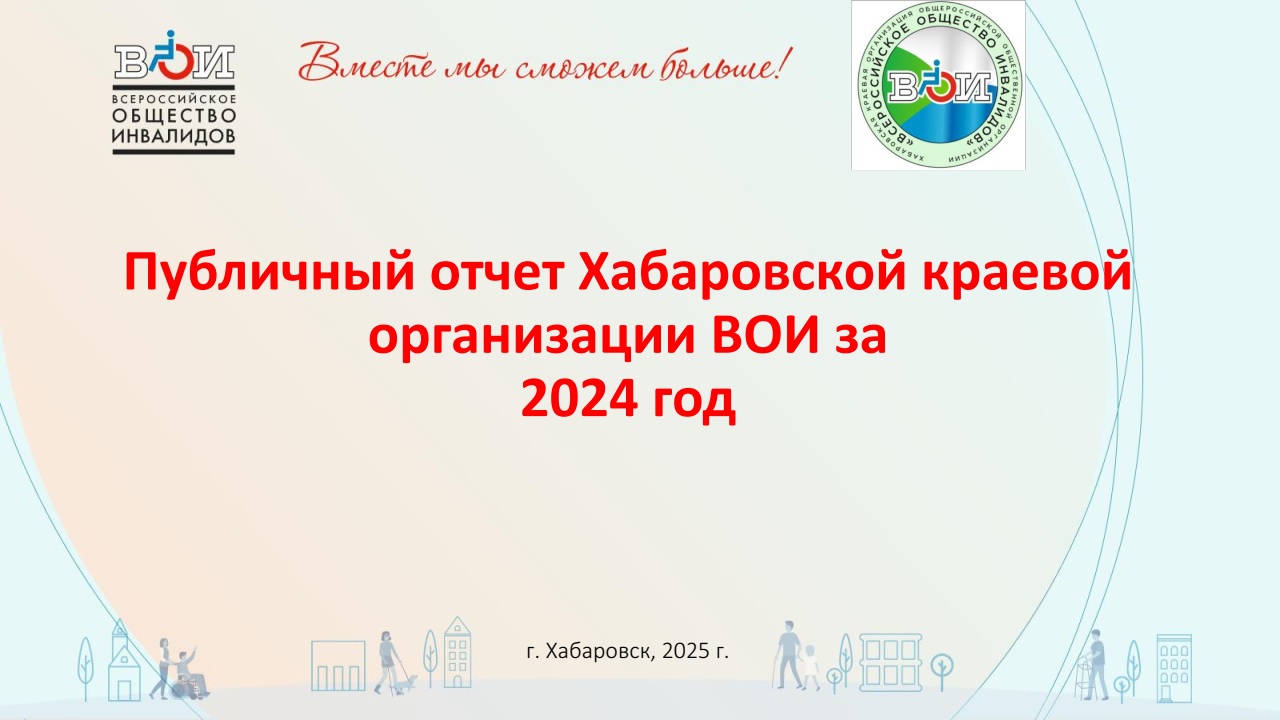 Деятельность Хабаровской краевой организации в отчётный период была направлена на выполнение программных задач, решений 4 съезда ВОИ и текущих Пленумов Центрального правления ВОИ. При этом ее формы и содержание в значительной степени определялись напряжённой обстановкой, вызванной продолжающейся реформой социальной сферы в Российской Федерации и в Хабаровском крае. В частности, заменой натуральных социальных льгот их денежной компенсацией, реорганизацией органов социальной защиты населения в Хабаровском крае. Эти и другие новации проходили и проходят на фоне последствий мирового финансового кризиса, который не мог не повлиять, в том числе и социальную политику Российской Федерации.
